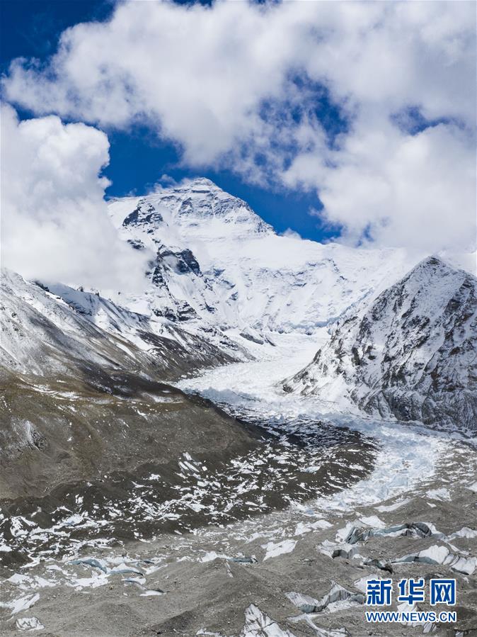 位于珠穆朗瑪峰腳下海拔5400米左右的中絨布冰川(4月30日攝,無人機照片)。位于珠穆朗瑪峰腳下海拔5400米左右的中絨布冰川,巍峨壯觀,冰塔林托起世界最高峰,讓人嘆為觀止。新華社記者晉美多吉攝