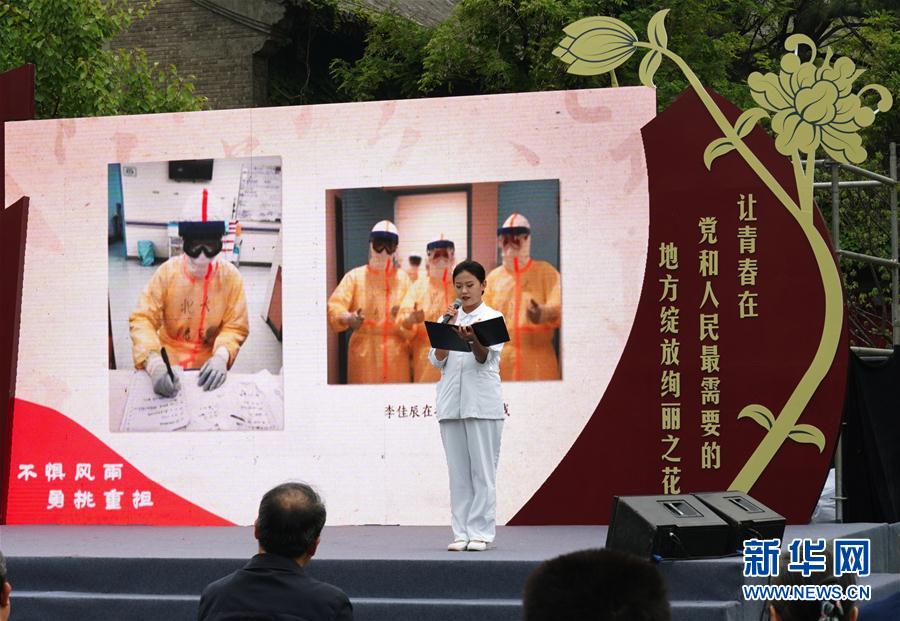 5月4日,北京大學(xué)援鄂醫(yī)療隊“90后”黨員代表在北大五四青春詩會朗誦。 當日,北京大學(xué)通過與武漢大學(xué)、西藏大學(xué)、北京大學(xué)研究生支教團聯(lián)合舉辦紀念五四運動升旗儀式以及北京大學(xué)2020年五四青春詩會等活動,傳承五四精神,紀念五四青年節(jié)。 新華社記者 張晨霖 攝