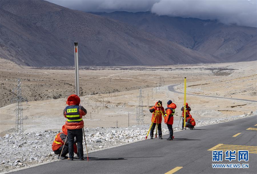 國測一大隊隊員在西藏定日縣曲當(dāng)鄉(xiāng)境內(nèi)進行水準(zhǔn)測量(4月18日攝)。水準(zhǔn)測量是一種利用提供水平視線的儀器(如水準(zhǔn)儀、水準(zhǔn)標(biāo)尺),測定地面不同點之間的高差,并以此推算高度的一種方法,是經(jīng)典大地測量的重要技術(shù)之一。在目前正在進行的2020珠峰高程測量中,部分國測一大隊隊員承擔(dān)了水準(zhǔn)測量的任務(wù)。新華社記者孫非攝