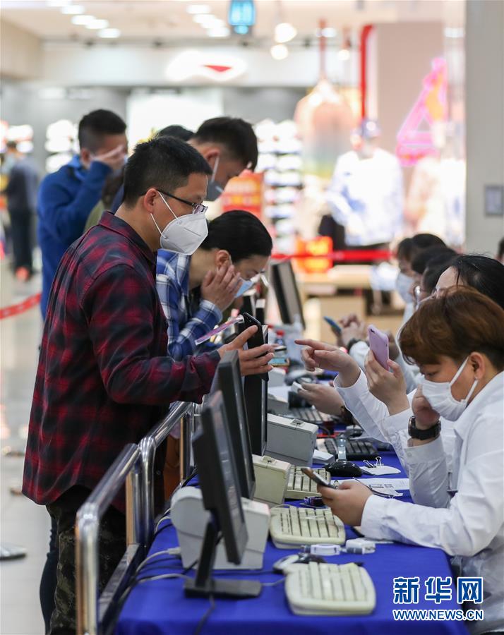 5月5日,消費(fèi)者在上海一家商場(chǎng)的消費(fèi)券服務(wù)臺(tái)前排隊(duì)辦理業(yè)務(wù)。5月4日晚,上海首次啟動(dòng)大規(guī)模商業(yè)促銷活動(dòng)“五五購物節(jié)”,多家在線新經(jīng)濟(jì)企業(yè)參與,通過線上流量?jī)?yōu)勢(shì)反哺線下賣場(chǎng),實(shí)現(xiàn)電商與實(shí)體零售融合互動(dòng),激活消費(fèi)潛力、驅(qū)動(dòng)消費(fèi)復(fù)蘇。據(jù)“上海發(fā)布”的消息,截至5日14時(shí)12分,“五五購物節(jié)”上海地區(qū)消費(fèi)支付總額已超100億元。新華社記者丁汀攝