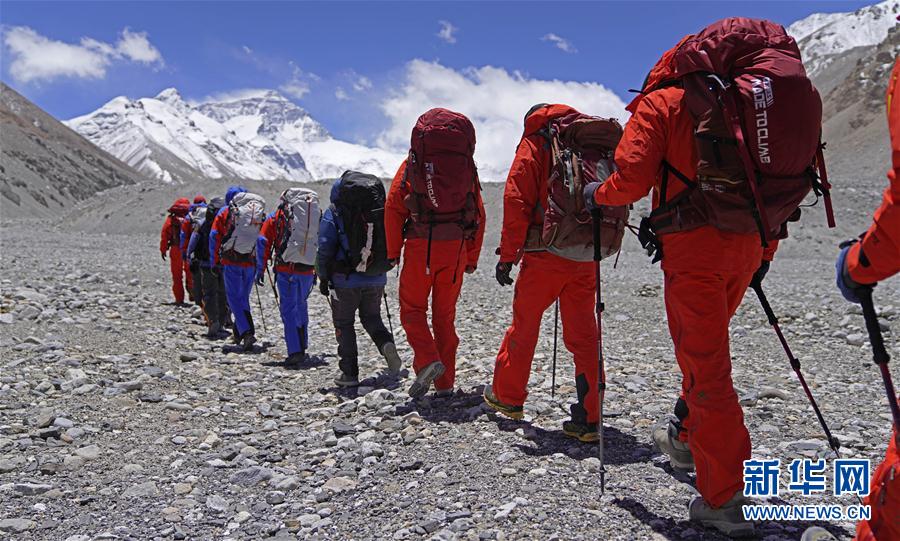 當日,2020珠峰高程測量登山隊伍在珠峰大本營舉行出發(fā)儀式。30多名隊員從海拔5200米的大本營向更高海拔出發(fā),開啟珠峰沖頂測量。隊員們力爭抓住近日的天氣窗口,擇日登頂測量。如果成功,這將是我國專業(yè)測繪人員首次登頂珠峰測高。新華社記者普布扎西攝