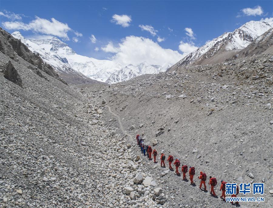 5月6日,登山隊員們離開珠峰大本營,向更高海拔進發(fā)。新華社記者普布扎西攝