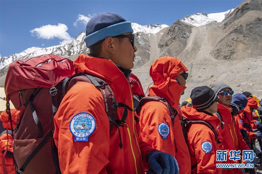 5月6日,登山隊員們在珠峰大本營舉行出發(fā)儀式。