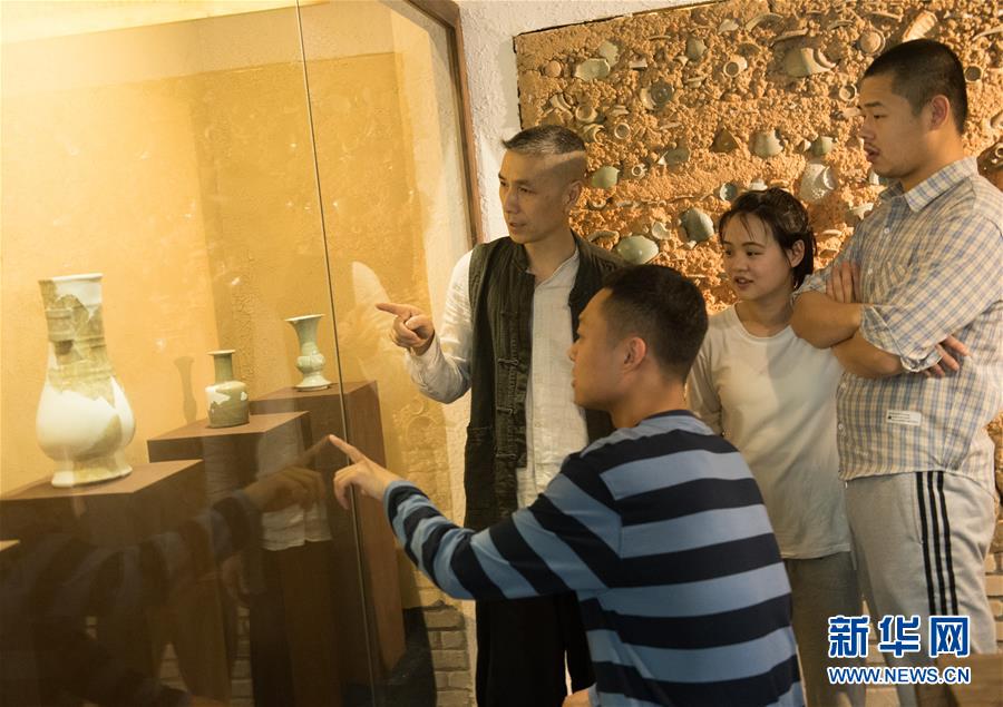 5月7日,瓷器愛(ài)好者在龍泉青瓷裝飾紋樣研究所參觀。1965年出生的項(xiàng)宏金,被浙江龍泉年輕一代瓷人稱(chēng)為“項(xiàng)哥”,他從20世紀(jì)90年代開(kāi)始收集龍泉青瓷標(biāo)本,研究青瓷紋樣。2014年出版著作《龍泉青瓷裝飾紋樣》,次年開(kāi)設(shè)龍泉青瓷裝飾紋樣研究所,將自己收藏的千余件標(biāo)本跟瓷器愛(ài)好者、創(chuàng)作者免費(fèi)分享。新華社記者翁忻旸攝
