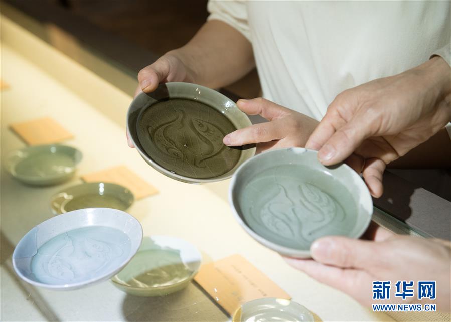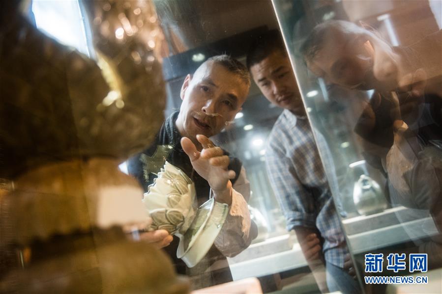 5月8日,項(xiàng)宏金在龍泉青瓷裝飾紋樣研究所查看自己收藏的一些古瓷器。1965年出生的項(xiàng)宏金,被浙江龍泉年輕一代瓷人稱(chēng)為“項(xiàng)哥”,他從20世紀(jì)90年代開(kāi)始收集龍泉青瓷標(biāo)本,研究青瓷紋樣。2014年出版著作《龍泉青瓷裝飾紋樣》,次年開(kāi)設(shè)龍泉青瓷裝飾紋樣研究所,將自己收藏的千余件標(biāo)本跟瓷器愛(ài)好者、創(chuàng)作者免費(fèi)分享。新華社記者翁忻旸攝