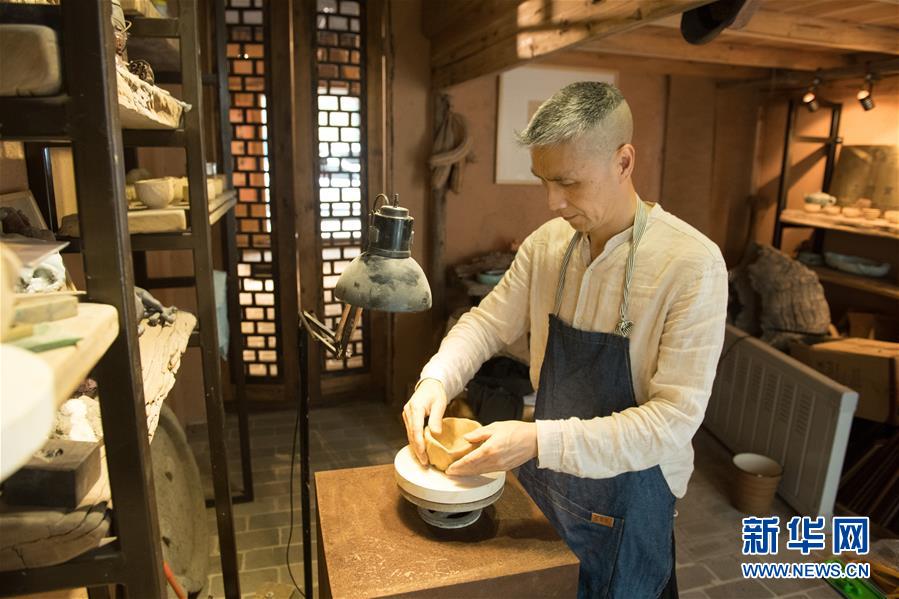 5月8日,項(xiàng)宏金在龍泉青瓷裝飾紋樣研究所捏制器皿。1965年出生的項(xiàng)宏金,被浙江龍泉年輕一代瓷人稱(chēng)為“項(xiàng)哥”,他從20世紀(jì)90年代開(kāi)始收集龍泉青瓷標(biāo)本,研究青瓷紋樣。2014年出版著作《龍泉青瓷裝飾紋樣》,次年開(kāi)設(shè)龍泉青瓷裝飾紋樣研究所,將自己收藏的千余件標(biāo)本跟瓷器愛(ài)好者、創(chuàng)作者免費(fèi)分享。新華社記者翁忻旸攝