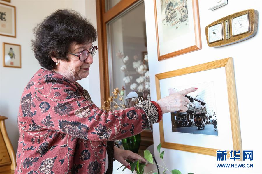 4月23日,索尼婭·米爾伯格在位于德國柏林東郊一個(gè)小鎮(zhèn)的家中介紹她在上海舊居的照片。新華社記者單宇琦攝