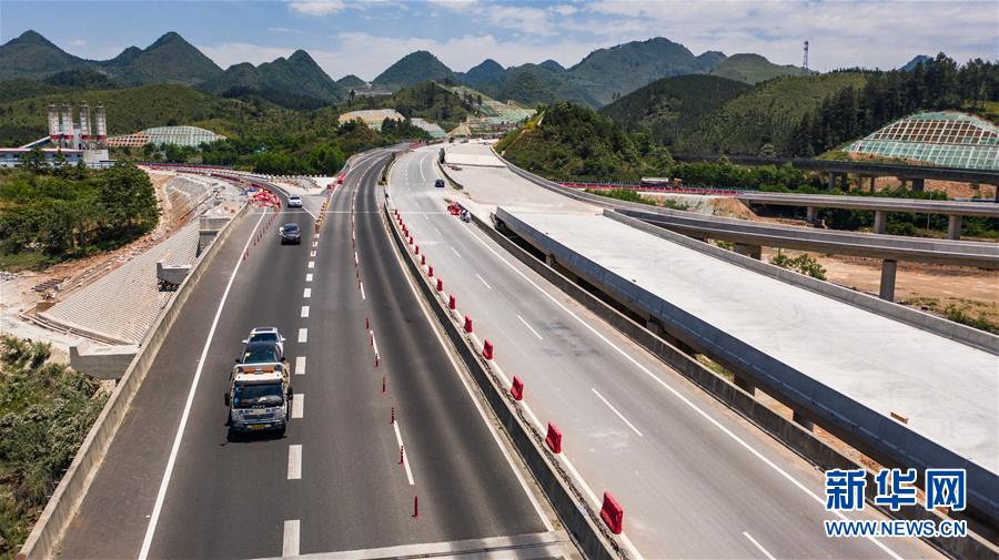 都安高速改擴(kuò)建路段的惠水樞紐(無人機(jī)照片,5月9日攝)。  新華社記者 陶亮 攝