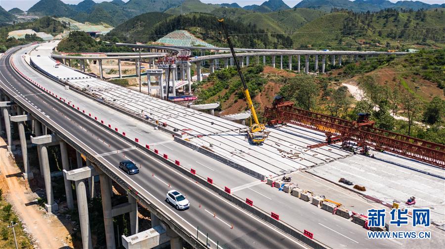 都安高速改擴(kuò)建路段的惠水特大橋(無人機(jī)照片,5月9日攝)。 新華社記者 陶亮 攝