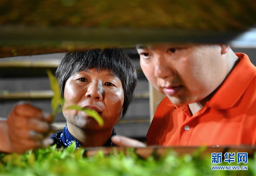 方舟跟著母親游玉瓊(左)學習手工制作武夷巖茶(5月10日攝)。新華社記者魏培全攝
