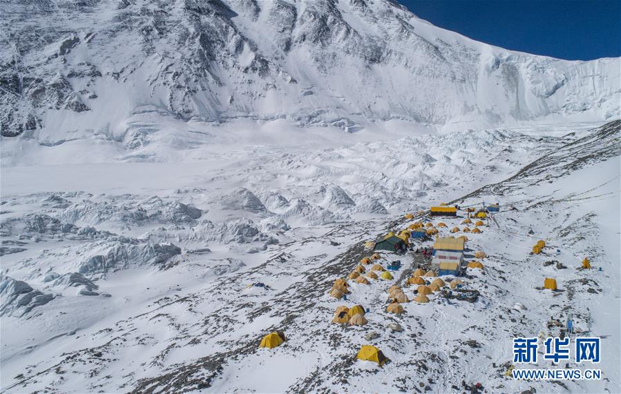 這是海拔6500米的珠峰前進營地(5月10日無人機照片)。