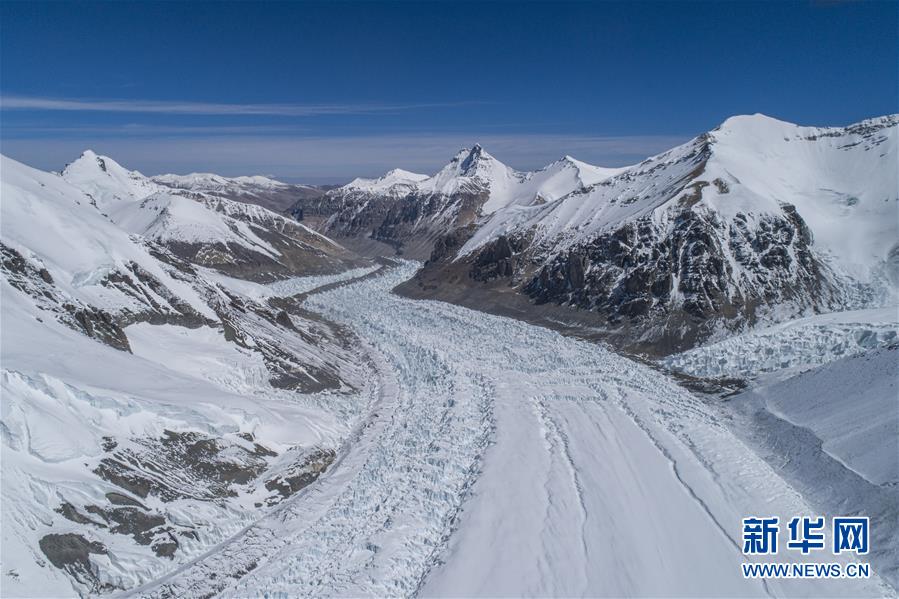 這是海拔6500的珠峰前進(jìn)營(yíng)地附近的冰川(5月10日無人機(jī)照片)。新華社記者孫非攝