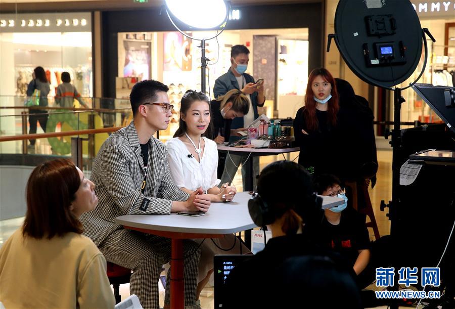 這是5月9日在上海一家商場拍攝的網(wǎng)絡(luò)直播活動(dòng)現(xiàn)場。新華社記者陳飛攝