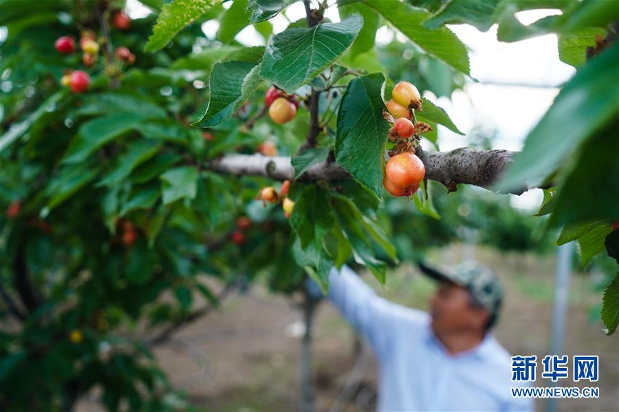游客在金湖縣金綠源果蔬采摘園采摘櫻桃(5月11日攝)。新華社記者韓瑜慶攝