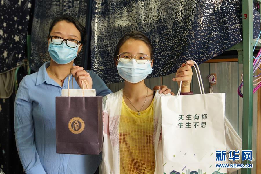 5月15日,在西南大學(xué)女生宿舍內(nèi),一名學(xué)生(右)展示學(xué)校和學(xué)院送來(lái)的裝有口罩、防疫指南的紙袋。當(dāng)日,重慶西南大學(xué)迎來(lái)疫情以來(lái)首批返校大學(xué)生。據(jù)介紹,按照疫情防控的需要,重慶市高校2020年春季學(xué)期從5月11日起按照“一校一策”原則,實(shí)行錯(cuò)峰錯(cuò)時(shí)分批次有序開學(xué)復(fù)課。新華社記者劉潺攝