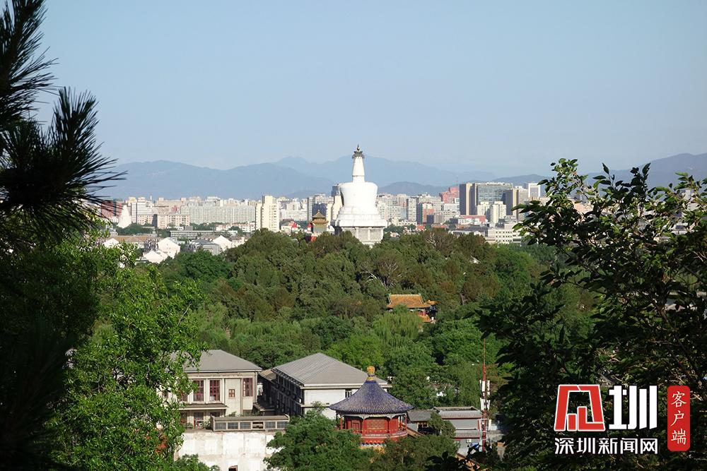 2020年5月18日,北京,天氣晴好碧空萬(wàn)里,游客在景山公園登高遠(yuǎn)望,北京城壯美景觀盡收眼底。