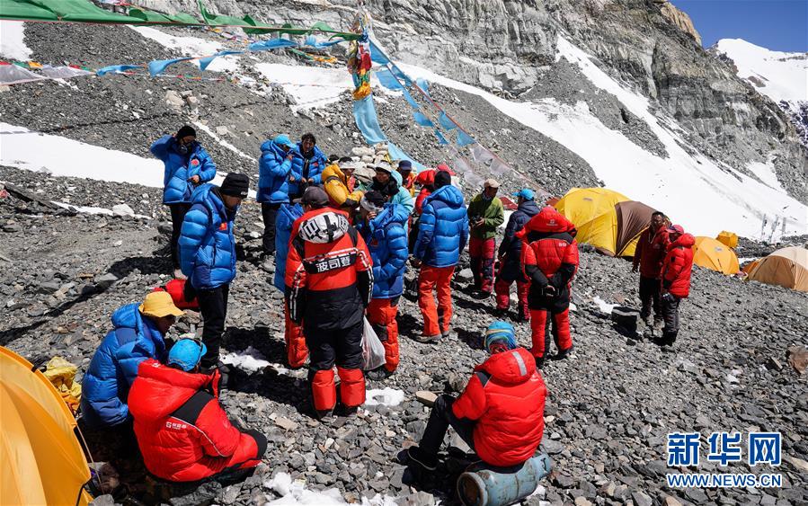 5月18日,沖頂隊員名單公布后,隊員們在進行相關(guān)準備工作。新華社特約記者扎西次仁攝