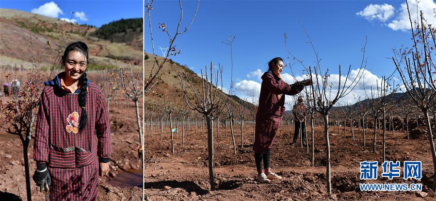 拼版照片:左圖為西藏昌都市芒康縣幫達(dá)鄉(xiāng)毛尼村村民拉姆卓瑪;右圖為拉姆卓瑪在芒康縣林業(yè)產(chǎn)業(yè)扶貧苗圃基地忙碌。2020年,經(jīng)朋友介紹,拉姆卓瑪來到苗圃基地打工,每天有120元的收入。苗圃基地還吸納了附近易地扶貧搬遷安置點(diǎn)的80多名群眾穩(wěn)定就業(yè)(5月5日攝)。新華社記者詹彥攝