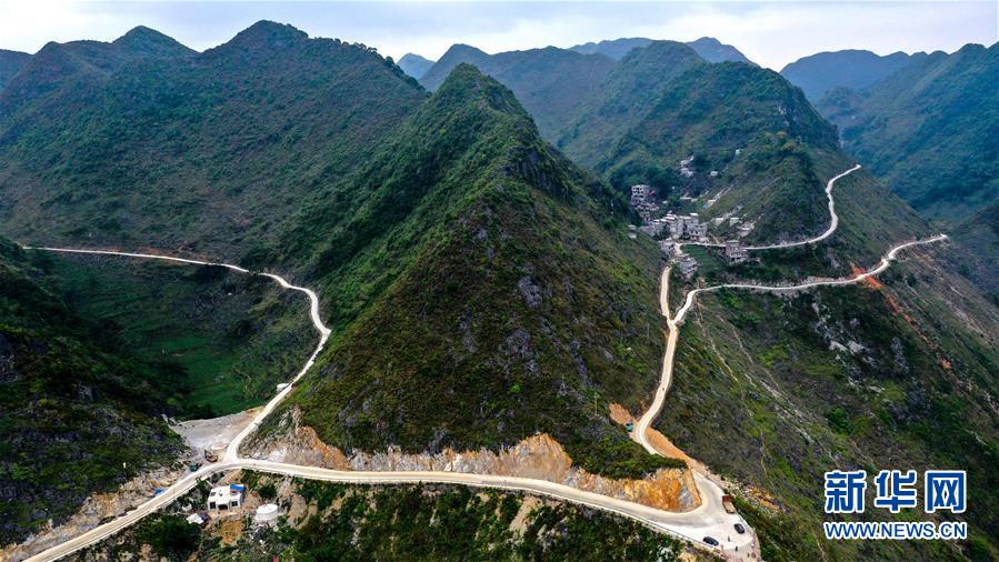 這是大化瑤族自治縣七百弄鄉(xiāng)天上人間景點(diǎn)附近的盤山公路(5月13日攝,無人機(jī)照片)。新華社記者曹祎銘攝