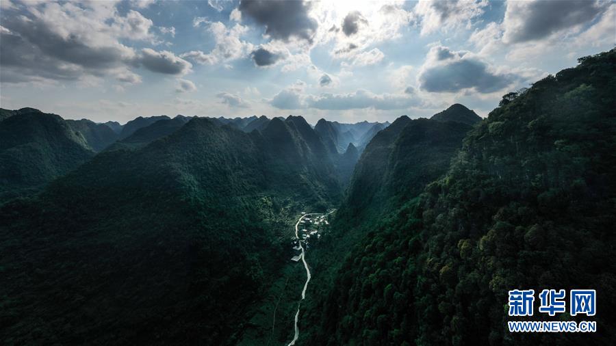 這是大化瑤族自治縣七百弄鄉(xiāng)山洼瑤寨風(fēng)貌(5月14日攝,無(wú)人機(jī)照片)。新華社記者張愛(ài)林?jǐn)z