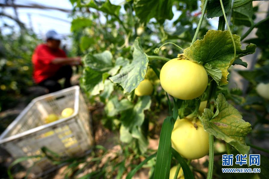 5月20日,新河縣尋寨鎮(zhèn)桃園村村民在采摘甜瓜。近年來,河北省新河縣尋寨鎮(zhèn)在推進(jìn)農(nóng)業(yè)供給側(cè)結(jié)構(gòu)性改革中,把甜瓜種植作為扶貧產(chǎn)業(yè)項(xiàng)目。村集體把部分閑置的土地流轉(zhuǎn)給本村有就業(yè)能力的貧困戶,并引導(dǎo)他們規(guī)?;N植甜瓜,帶動(dòng)群眾脫貧增收。新華社記者王曉攝