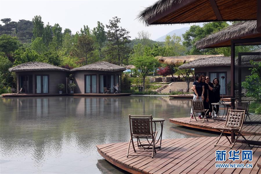 5月20日,游客在天津市薊州區(qū)下營(yíng)鎮(zhèn)小港村“不知山鄉(xiāng)宿”休閑拍照。新華社記者 馬平 攝
