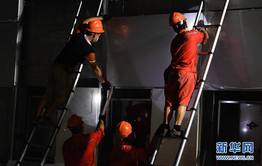 5月23日,工人在??谖拿鳀|越江通道項(xiàng)目隧道內(nèi)安裝照明設(shè)備。新華社記者楊冠宇攝