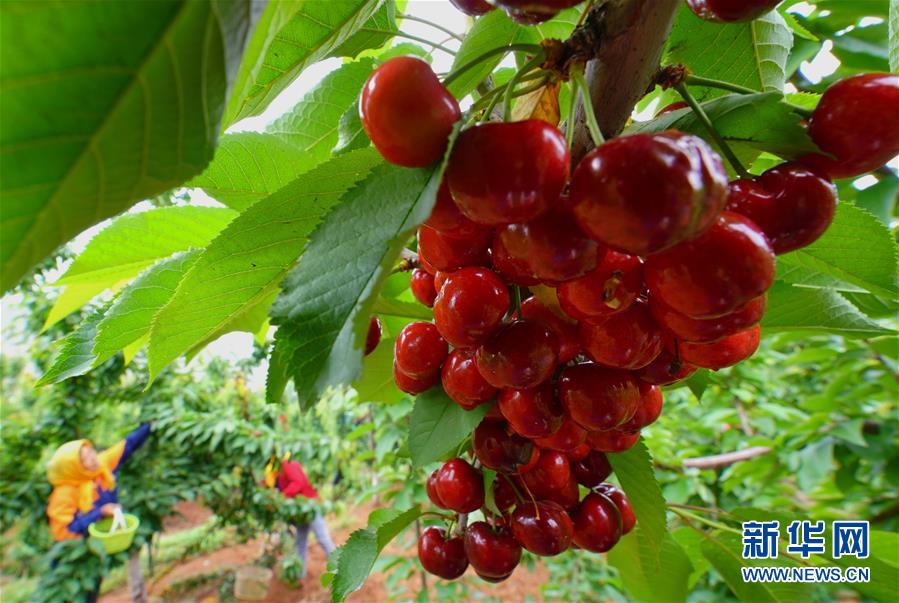 5月24日在灤州市九百戶鎮(zhèn)雞冠山生態(tài)產(chǎn)業(yè)園拍攝的大櫻桃。新華社記者楊世堯攝