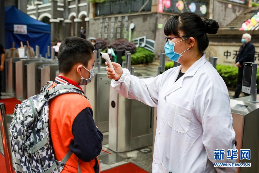 5月25日,貴陽(yáng)市中天北京小學(xué)未來(lái)方舟校區(qū)學(xué)生在返校時(shí)進(jìn)行體溫檢測(cè)。新華社記者歐東衢攝