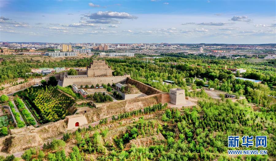 5月24日拍攝的樹林環(huán)繞的榆林市鎮(zhèn)北臺(無人機照片)。 2017年4月起,地處毛烏素沙漠南緣的陜西省榆林市開展主城區(qū)百萬畝生態(tài)圈及環(huán)城防護林帶建設,對荒山荒地荒沙、撂荒地、不宜耕作土地、閑置土地進行造林綠化,對低效林地進行提升改造。2019年11月,榆林市被授予“國家森林城市”稱號。昔日區(qū)域內的裸露土地全面綠化,城市及周圍處處綠樹成蔭,呈現出一派“塞上森林城”的美景。 新華社記者陶明攝