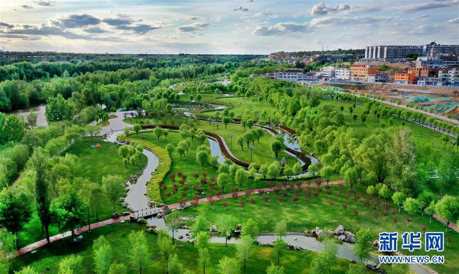 5月24日拍攝的榆林市河濱公園(無(wú)人機(jī)照片)。新華社記者陶明攝