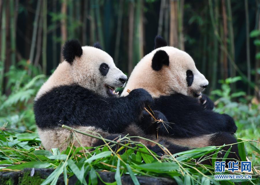 5月27日,大熊貓婷仔和隆仔在享受竹子大餐。正在享受竹子大餐的廣州長隆野生動(dòng)物世界大熊貓婷仔被大熊貓隆仔搶食,兩只大熊貓上演一場爭食戲碼。新華社記者劉大偉攝