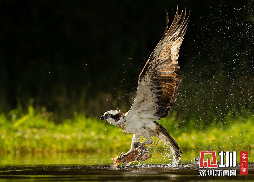 魚鷹俯沖入水捕魚 伺機(jī)而動“快準(zhǔn)狠”