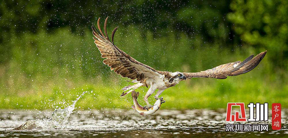 魚(yú)鷹俯沖入水捕魚(yú) 伺機(jī)而動(dòng)“快準(zhǔn)狠”