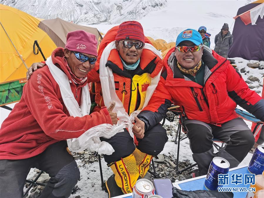 5月28日,測(cè)量登山隊(duì)員返回前進(jìn)營(yíng)地后慶祝登頂。當(dāng)日,中國(guó)2020珠峰高程測(cè)量登山隊(duì)安全返回海拔6500米的前進(jìn)營(yíng)地。5月27日,測(cè)量登山隊(duì)成功登頂珠穆朗瑪峰并完成峰頂測(cè)量等工作。新華社特約記者邊巴攝