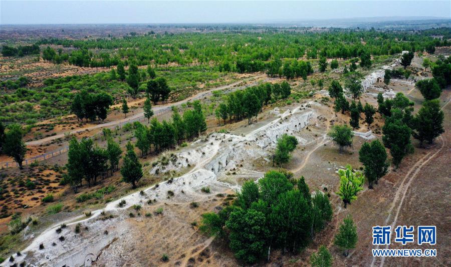 統(tǒng)萬城北城墻遺址(5月30日攝,無人機(jī)照片)。新華社記者劉瀟攝