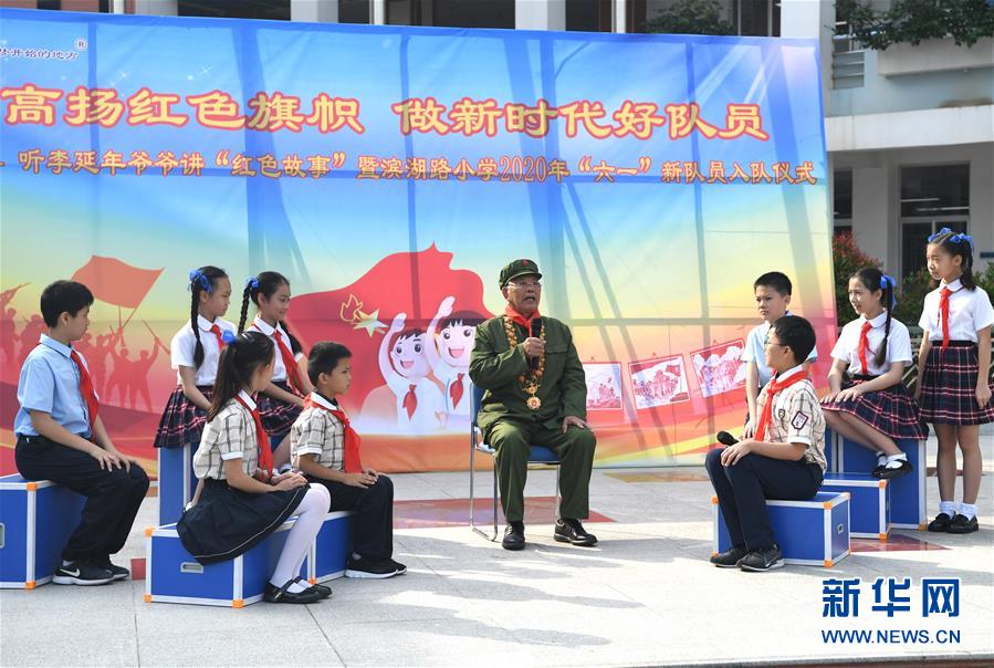 5月29日,李延年給孩子們講述紅色故事。“六一”國際兒童節(jié)來臨之際,“共和國勛章”獲得者、老一輩戰(zhàn)斗英雄李延年來到廣西南寧市濱湖路小學給孩子們講述戰(zhàn)爭年代的紅色故事,寄語他們好好學習、努力奮斗。孩子們向李延年贈送了師生共繪的“紅色畫卷”,向老英雄致敬。新華社記者周華攝