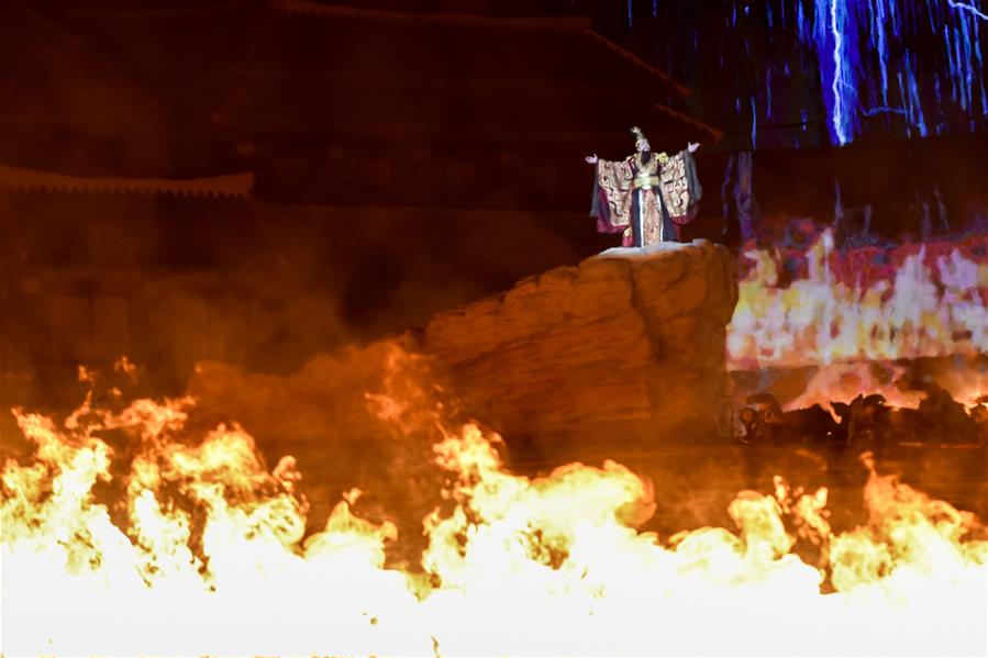 5月28日,演員在大型實景神話音樂劇《昆侖之約》中表演。5月28日,新疆文化旅游新名片——大型實景神話音樂劇《昆侖之約》在烏魯木齊南山景區(qū)上演。該劇融自然山水之美、藝術(shù)文化之光、現(xiàn)代科技之新于一體,為市民獻上一場視聽盛宴。新華社記者丁磊攝。
