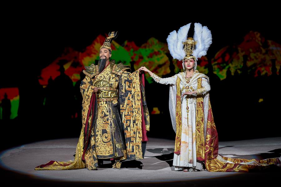 5月28日,演員在大型實(shí)景神話音樂劇《昆侖之約》中表演。5月28日,新疆文化旅游新名片——大型實(shí)景神話音樂劇《昆侖之約》在烏魯木齊南山景區(qū)上演。該劇融自然山水之美、藝術(shù)文化之光、現(xiàn)代科技之新于一體,為市民獻(xiàn)上一場視聽盛宴。新華社記者丁磊攝。