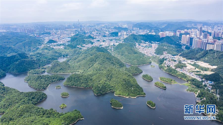 6月2日拍攝的貴陽市阿哈湖國家濕地公園(無人機照片)。初夏時節(jié),貴州省貴陽市阿哈湖國家濕地公園草木蒼翠,風景如畫,吸引人們前來休閑游玩。新華社記者陶亮攝。