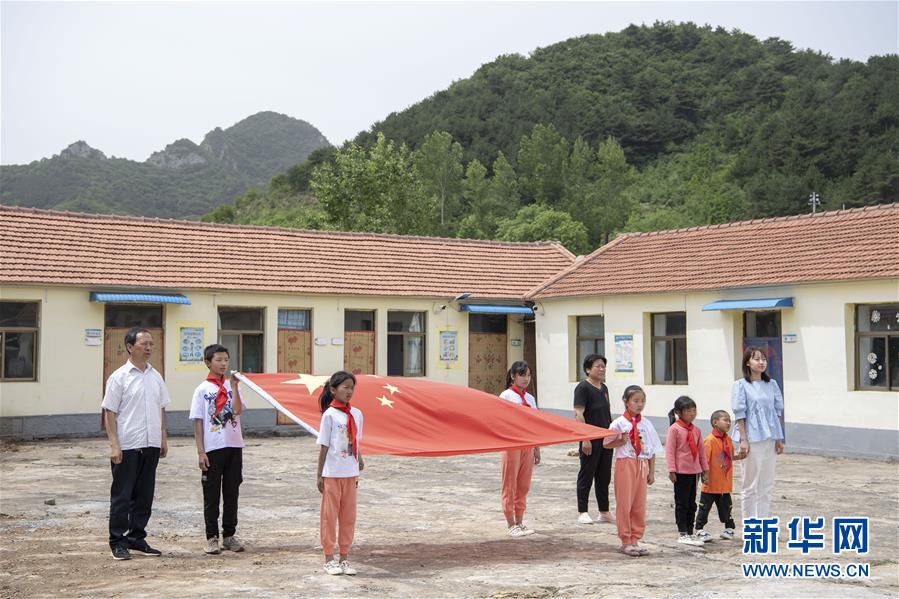 6月2日,開(kāi)學(xué)第一天,馬武寨寄宿制小學(xué)舉行了升旗儀式。新華社記者楊晨光攝。