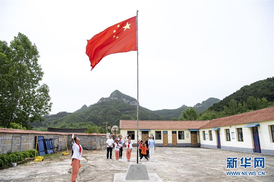 6月2日,開學(xué)第一天,馬武寨寄宿制小學(xué)舉行了升旗儀式。新華社記者楊晨光攝。