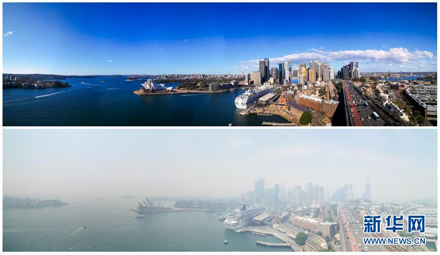 這張拼版照片顯示的是2018年7月6日(上)和2019年12月19日拍攝的澳大利亞悉尼港區(qū)的空氣質(zhì)量對(duì)比效果。2019年中至2020年初,持續(xù)半年左右的澳大利亞森林火災(zāi)造成嚴(yán)重的環(huán)境災(zāi)難。6月5日是第47個(gè)聯(lián)合國(guó)世界環(huán)境日,今年的主題為“關(guān)愛自然刻不容緩”。新華社記者白雪飛攝。