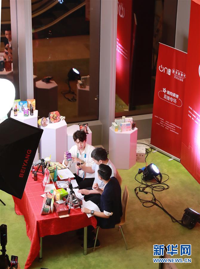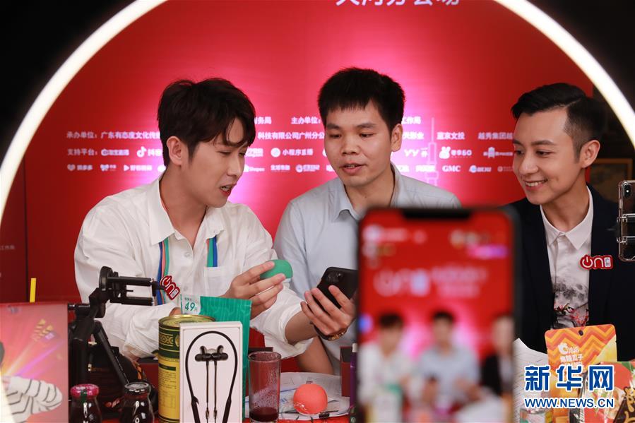 6月6日,主播在廣州市天河區(qū)分會場直播帶貨。新華社記者盧燁攝