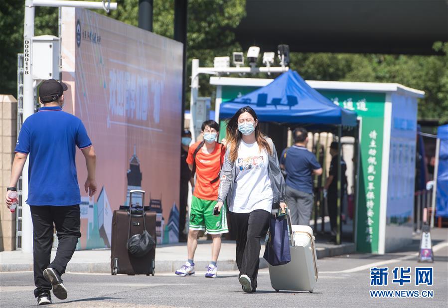 6月8日,在武漢大學(xué),返校學(xué)生步入校園。6月8日起,武漢大學(xué)、華中科技大學(xué)、武漢理工大學(xué)、華中師范大學(xué)等多所武漢高校迎來首批返校畢業(yè)生。新華社記者肖藝九攝