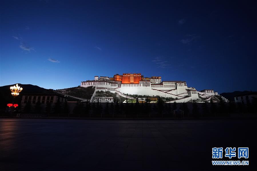 這是夜色中的布達拉宮(6月8日攝)。夜幕降臨,西藏拉薩布達拉宮燈光璀璨,夜景迷人。新華社記者詹彥攝