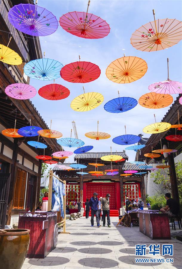 6月13日,市民在長(zhǎng)春市世茂蓮花山小鎮(zhèn)寬厚里商街參觀游覽。當(dāng)日是“文化和自然遺產(chǎn)日”。吉林長(zhǎng)春首屆蓮花山消夏生活節(jié)在世茂蓮花山小鎮(zhèn)舉行?;顒?dòng)將非遺展示與假日消暑休閑相結(jié)合,讓游人在“古色古香”的油紙傘巷中品傳統(tǒng)文化魅力,享夏日休閑愜意。新華社記者許暢攝。