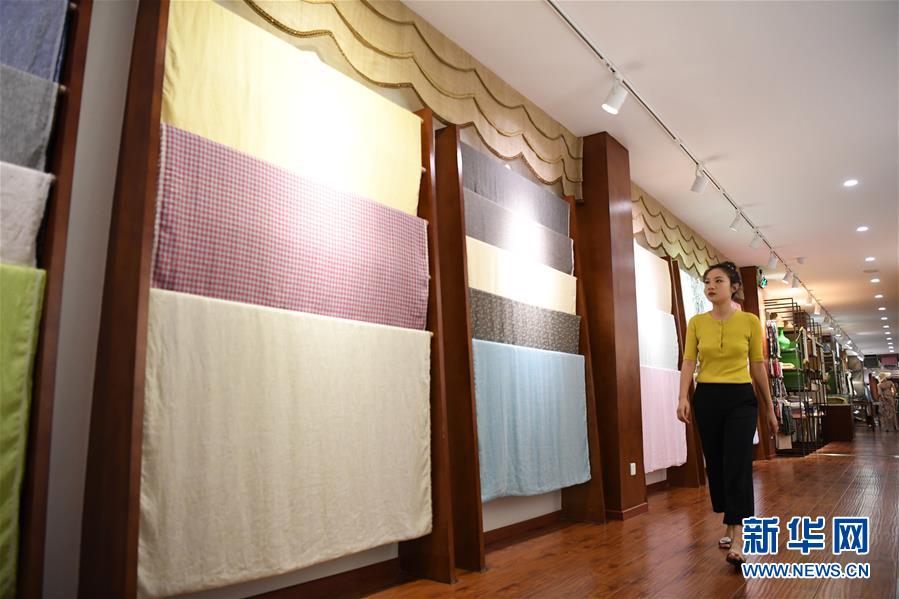 6月12日,天運夏布會館負(fù)責(zé)人唐藝在檢查展廳內(nèi)展示的夏布樣品。新華社記者 唐奕 攝