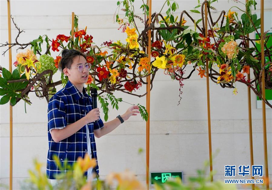 6月13日,第45屆世界技能大賽花藝項(xiàng)目冠軍、上海應(yīng)用技術(shù)大學(xué)學(xué)生陸亦煒在介紹自己主持設(shè)計(jì)和創(chuàng)作的花藝作品。當(dāng)日,“2020中國(guó)(上海)萱草文化節(jié)”在上海應(yīng)用技術(shù)大學(xué)開幕,校園里數(shù)百個(gè)品種的萱草花競(jìng)相綻放,萱草科研推廣、萱草文化交流等多項(xiàng)活動(dòng)同時(shí)舉行。新華社記者 劉穎 攝