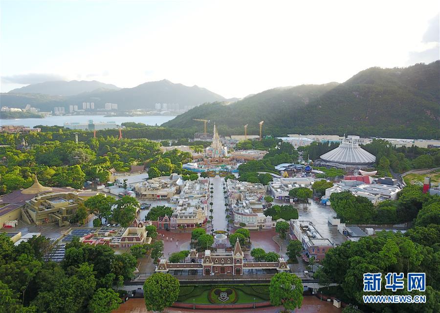 6月17日拍攝的香港迪士尼樂園(無人機照片)。香港迪士尼樂園度假區(qū)將于6月18日重新開放,并將實施一系列措施保障游客的健康及安全。新華社記者 李鋼 攝